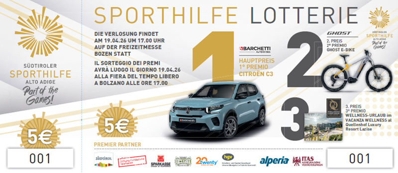 Die Ziehung der Gewinner-Lose findet am 19. April 2026 auf der Freizeitmesse in Bozen statt!