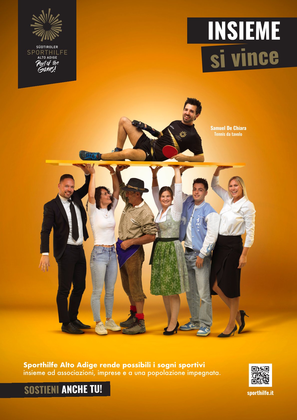 Questo sostegno arriva dalle associazioni sportive, dalle famiglie, dai vicini, dagli amici. Lo sport deve essere sostenuto da tutti – solo così l’Alto Adige potrà continuare a essere terra di sport e formare nuovi campioni. Ed è proprio questo che la campagna vuole rendere visibile: ex atleti, aziende, sportivi amatoriali e persone impegnate portano letteralmente gli atleti sulle proprie spalle. Perché: solo insieme si vince.