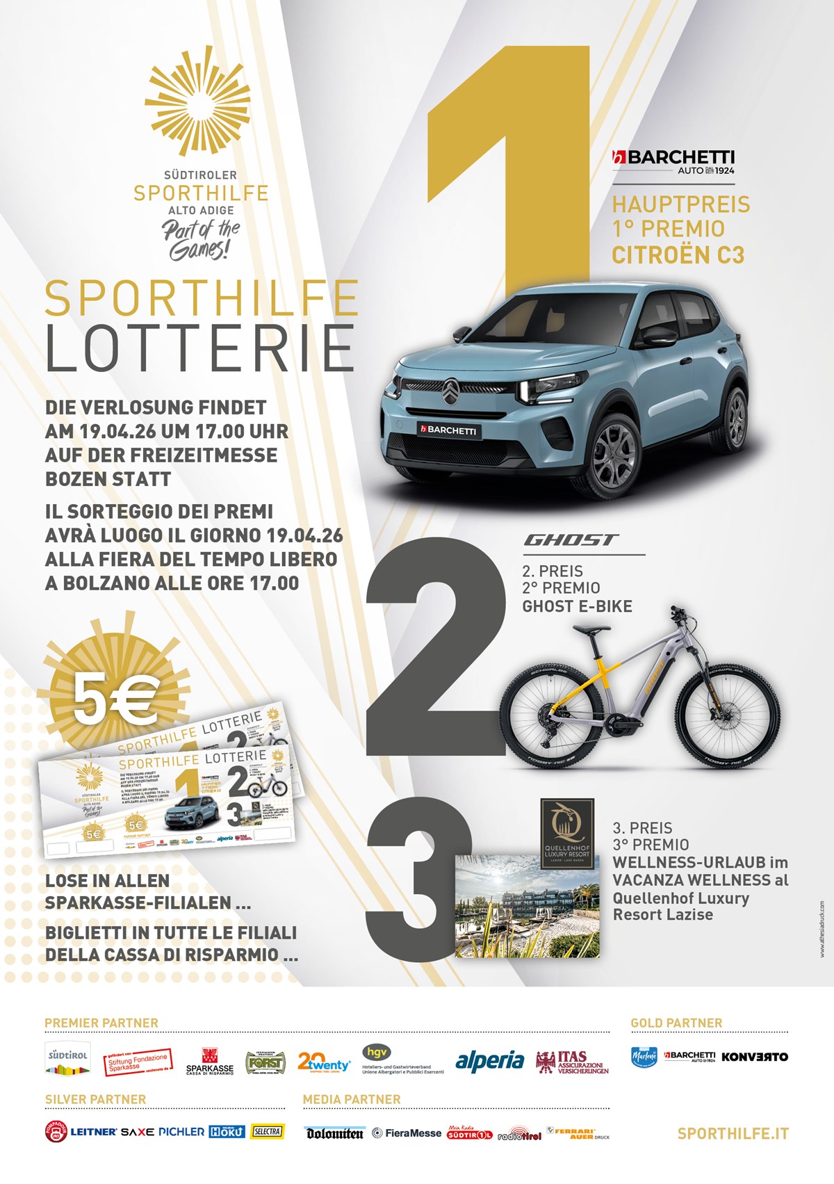 Al centro dell’iniziativa non c’è solo la vincita. Da anni la lotteria, la lotteria della Sporthilfe rappresenta uno dei pilastri fondamentali per il sostegno ai giovani talenti sportivi dell’Alto Adige. Ogni biglietto venduto è un investimento nel futuro: nella nuova generazione di atlete e atleti che, con passione, disciplina e grandi sogni, costruiscono il proprio percorso.