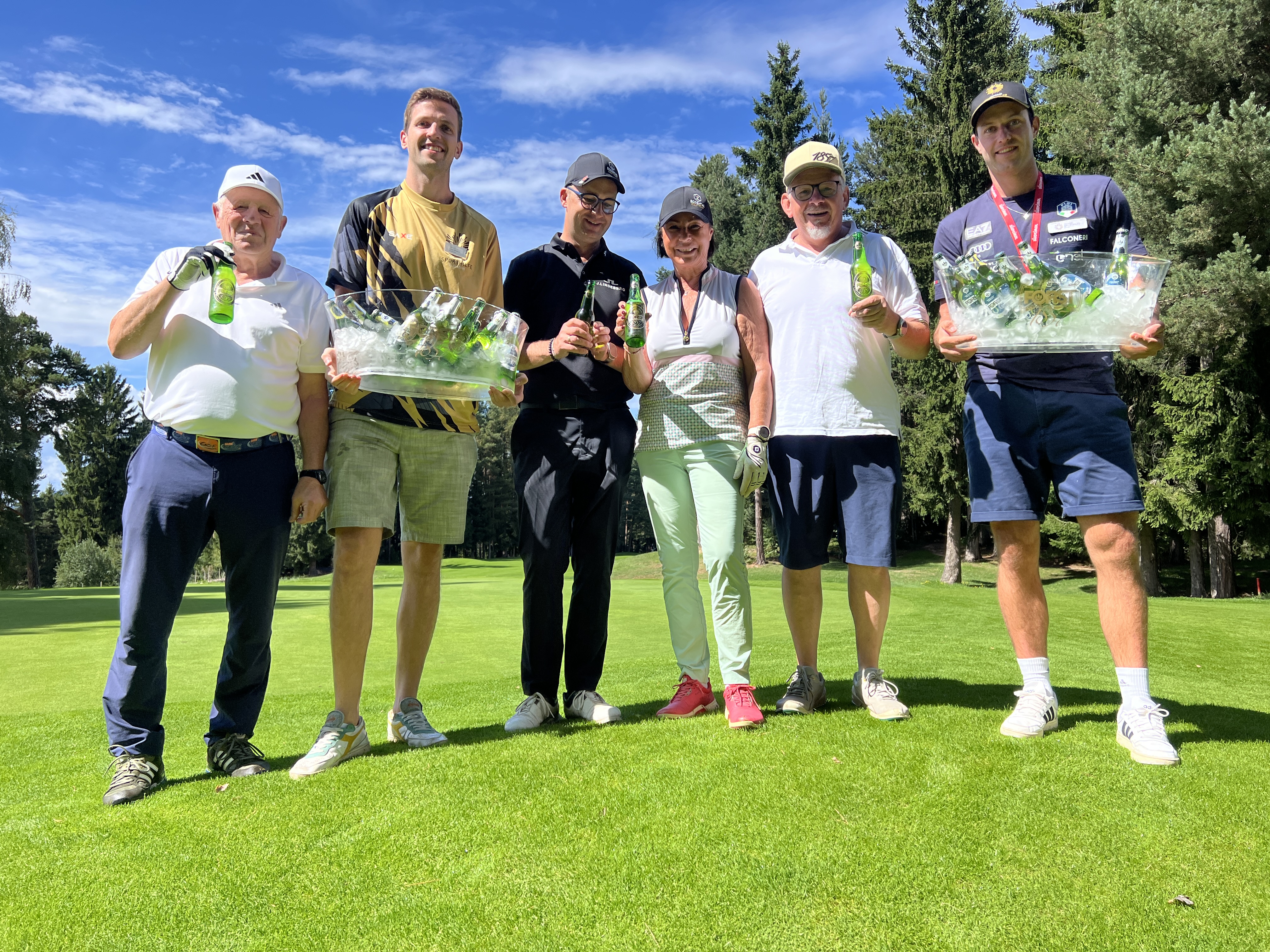 Das Wetter präsentierte sich „schottisch“ am Golfplatz in Petersberg – mal sonnig, mal wechselhaft – und sorgte für authentische Golf-Atmosphäre ganz im Sinne der Ursprünge dieser Sportart. Das Turnier, organisiert von der Südtiroler Sporthilfe gemeinsam mit der Spezialbier-Brauerei FORST, brachte Sponsorenteams, Sportgrößen von gestern und heute sowie Nachwuchsathleten zusammen. Mit dabei waren unter anderem Kunstbahnrodel-Olympiamedaillengewinner Markus Prock, Ex-Skistar und Sporthilfe-Athlet Peter Fill, der ehemalige Vize-Olympiasieger Andreas Wenzel, Skilegende Michael „Much“ Mair, Vize-Skiweltmeister Peter Runggaldier, Eishockeyspieler Stefan Zisser, FISI-Präsident Markus Ortler, Naturbahnrodel-Weltmeisterin Evelyn Lanthaler, Beachvolleyballer Jakob Windisch, Radprofi Eva Lechner, Skicrosser Dominik Zuech und auch die Snowboard-Geschwister Sophie und Tommy Rabanser schlugen mit ab.