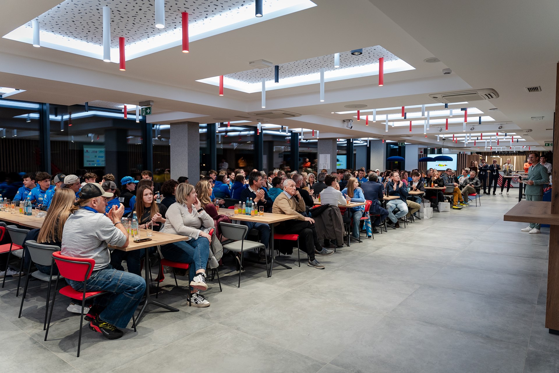 Die Moderation des Abends übernahm Thomas Vonmetz, ihm zur Seite stand die ehemalige Skirennläuferin Karoline Pichler, die seit Kurzem dem Gutachterausschuss der Südtiroler Sporthilfe angehört. Sie stellten die 105 geförderten Athlet:innen vor – 13 Wintersportarten, wie etwa Biathlon, Rodeln, Skilanglauf, Ski Alpin, Eiskunstlauf, Eisschnellauf und noch viele mehr. Die Nachwuchssportler:innen werden mit einer Gesamtsumme von 136.900 Euro gefördert; 15.000 Euro davon trägt die Stiftung Südtiroler Sparkasse bei. „Der Sport vermittelt Werte, die weit über den Wettkampf hinausreichen – er stärkt Charakter, Gemeinschaft und Verantwortungsbewusstsein. Als Stiftung ist es uns wichtig, jungen Talenten genau in dieser Phase beizustehen, in der Engagement und Leidenschaft den Grundstein für ihre Zukunft legen. Wer den Sport fördert, stärkt nicht nur Athletinnen und Athleten, sondern die Gesellschaft als Ganzes,“ sagt Gerhard Comper, Präsident des FC Südtirol und Verwaltungsratsmitglied der Stiftung Südtiroler Sparkasse.  Im Anschluss an die offizielle Vorstellung fand das namensgebende Get Together statt – ein lebendiger Austausch zwischen Sportler:innen, Eltern, Sponsor:innen, Förderer:innen und Partnern. In lockerer Atmosphäre wurde genetzwerkt, diskutiert, gelacht und der gemeinsame Spirit gefeiert, der die Sporthilfe-Family auszeichnet.