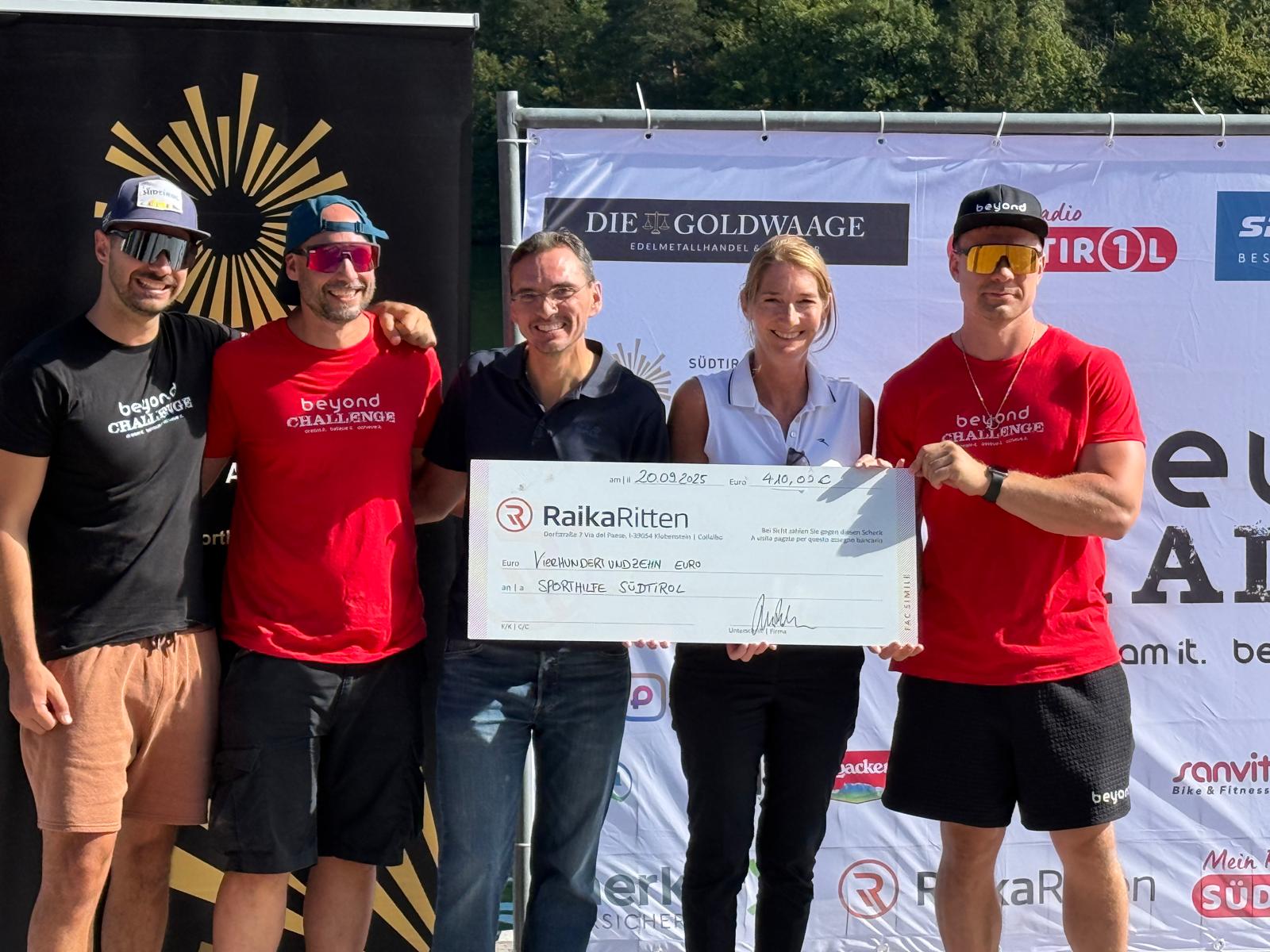 Sport, spirito di squadra e solidarietà sono stati al centro della Beyond Challenge nel bosco di Monticolo. È stata consegnata una donazione di 410 euro alla Sporthilfe Alto Adige.