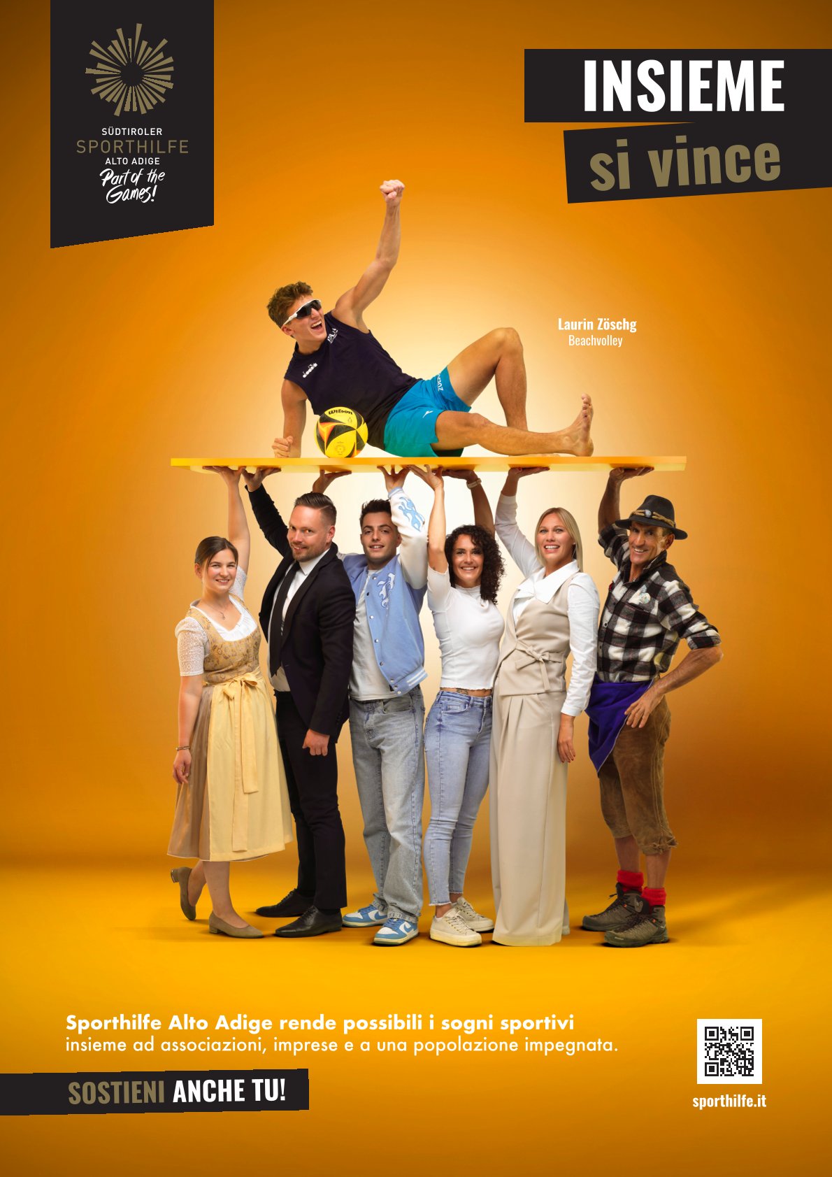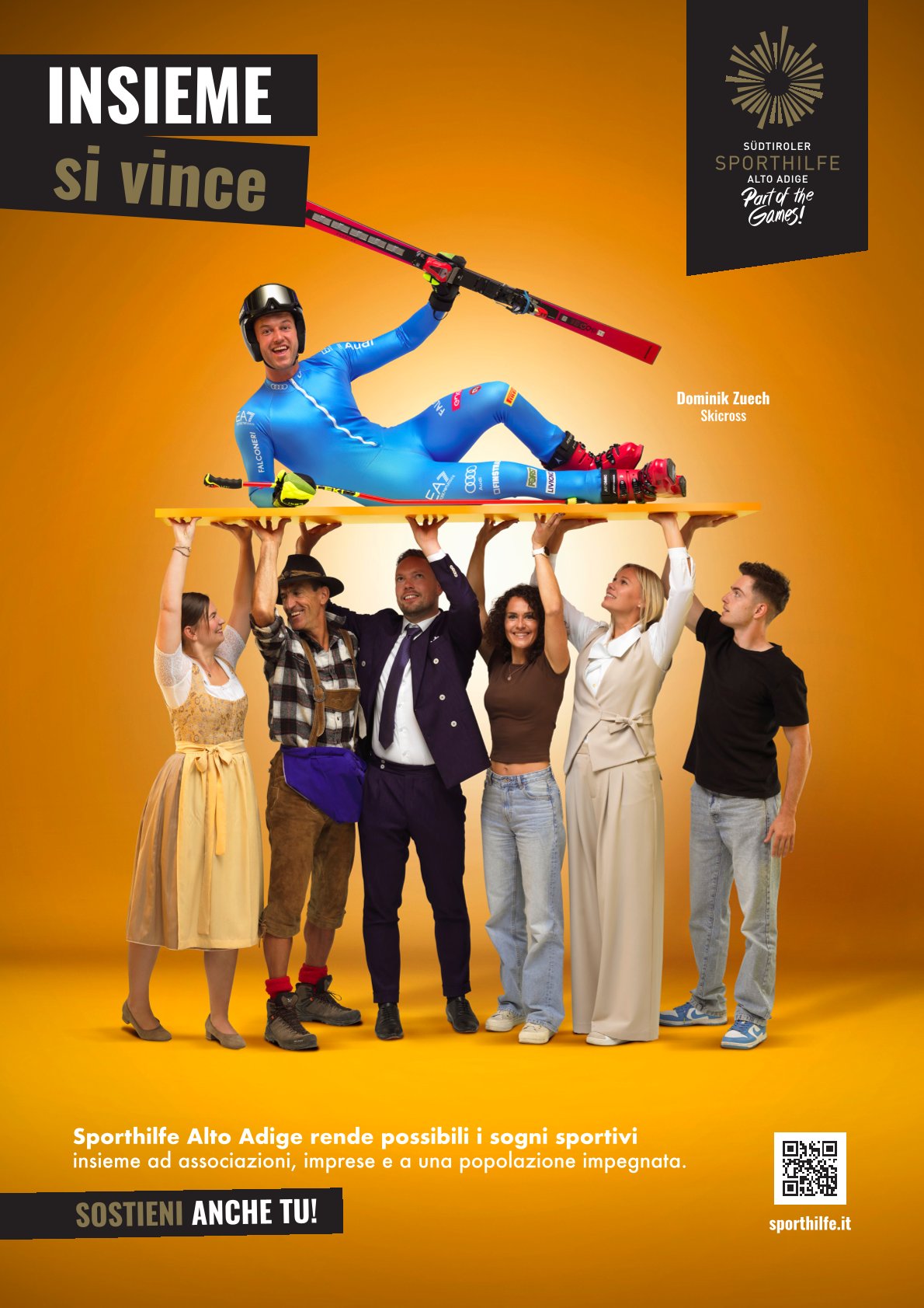Le prossime settimane saranno dedicate allo sport d’élite, ma anche alla consapevolezza che il successo sportivo si fonda sempre su una solida base. La campagna sottolinea che l’Alto Adige è un vero territorio sportivo, dove lo sport – e in particolare la formazione dei giovani talenti – ha un ruolo centrale. L’idea alla base della campagna “Insieme si vince” rappresenta visivamente ciò che nello sport spesso rimane invisibile: gli atleti sono portati sulle spalle di molti.